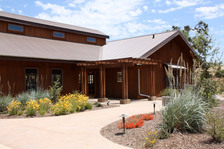 When I first pulled in to the parking lot, I immediately noticed how beautiful the grounds were. The winery is surrounded by vines that were full of grape bunches in the stage just before their skin becomes saturated with color. Assorted plants and flowers added splashes of color around the vine-covered building and a couple of signs noted trailheads with paths meandering up into the hills.