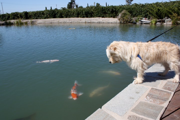 Notes: The grounds are absolutely gorgeous at Bianchi and dogs are very welcome as long as the owners have a leash available. We sat by the Koi filled lake and Booker enjoyed water from his very own bowl.