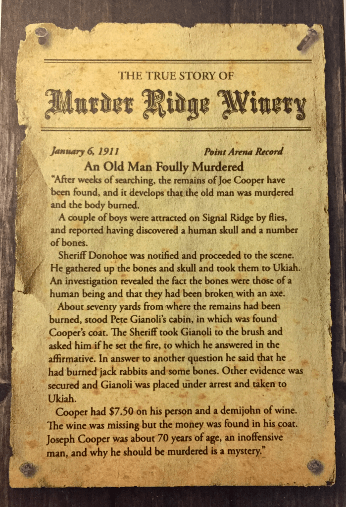 As both a nature-lover and one who is fascinated by dark and mysterious true stories (the Murder Ridge name comes from a true story about an event that occurred on their ranch), I obviously wanted to learn more and try their wines.  Murder Ridge sources their wine grapes from the Mendocino Ridge AVA – a high elevation, cool climate area with rugged, steep hillsides that has been nicknamed “Islands in the Sky” due to the fact that many of the highest vineyards are perched above a thick blanket of fog that makes the mountain tops look like islands floating in a foggy sea.